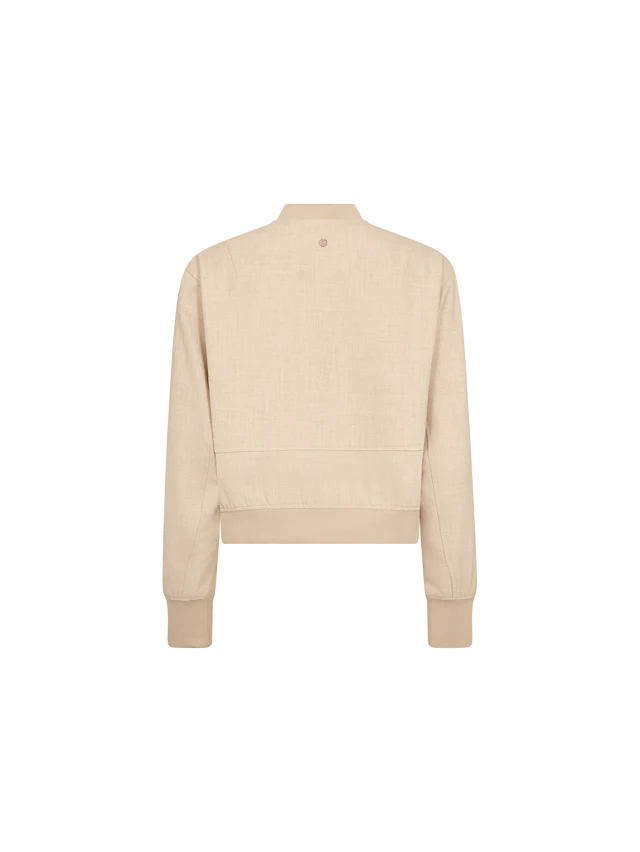 A soft bomber-inspired jacket crafted from a recycled polyester blend with a touch of stretch for comfort. Designed in a relaxed fit with a clean zip closure and ribbed details that create a subtle contrast. Style it with matching pants or jeans for an effortless. laid-back look with a polished twist.
