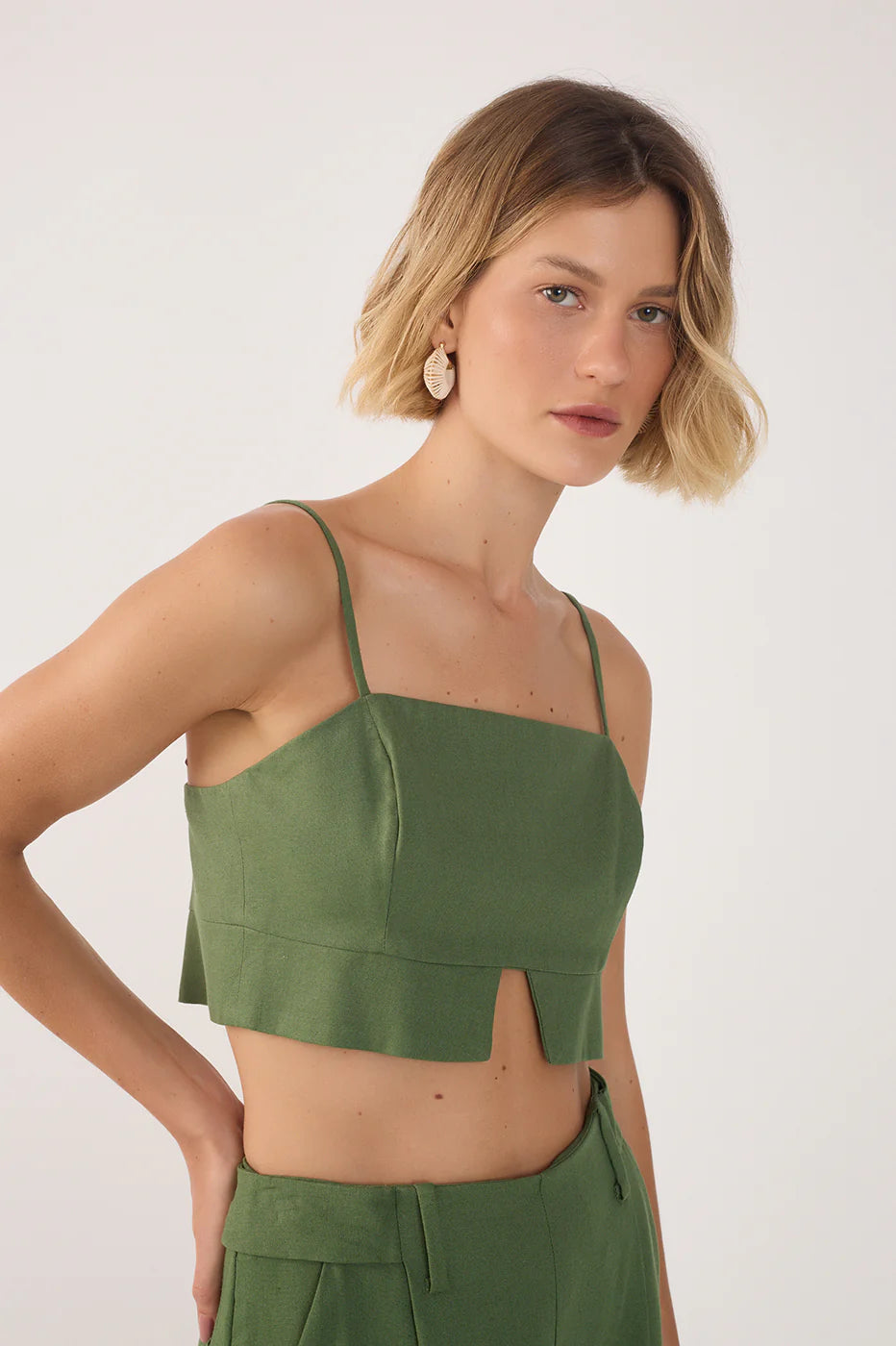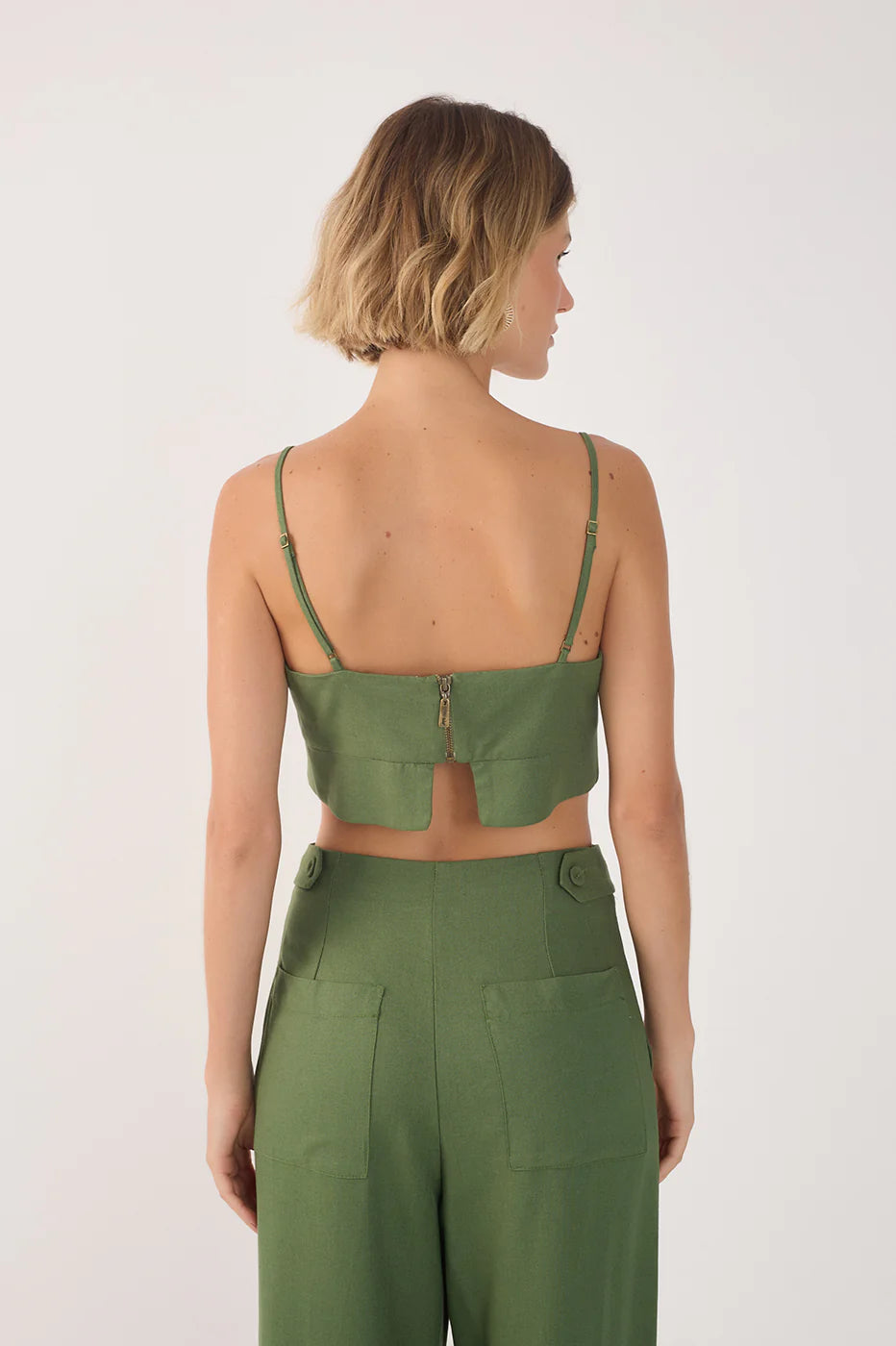 The ideal piece to create light and elegant looks. The Green Cut-Out Adjustable Straps Top features adjustable thin straps for a comfortable fit. The hem detail adds a modern touch. while the metal back zipper makes dressing easier and adds a striking finish.