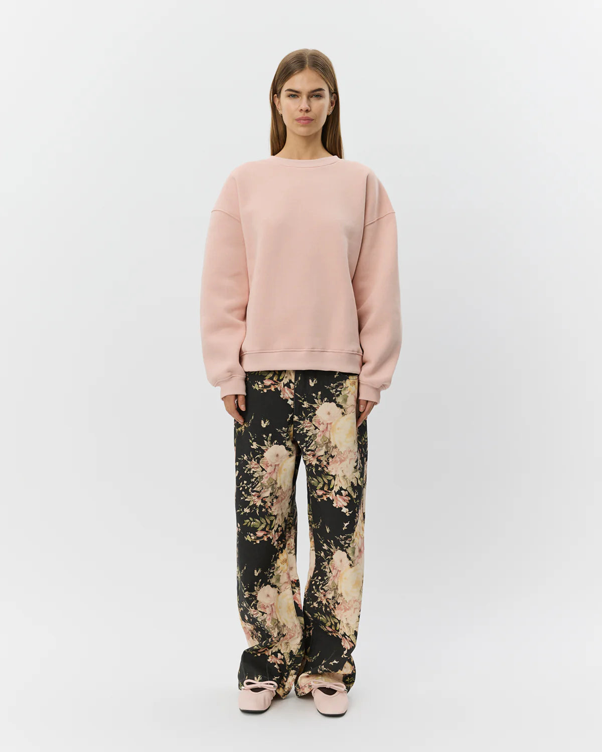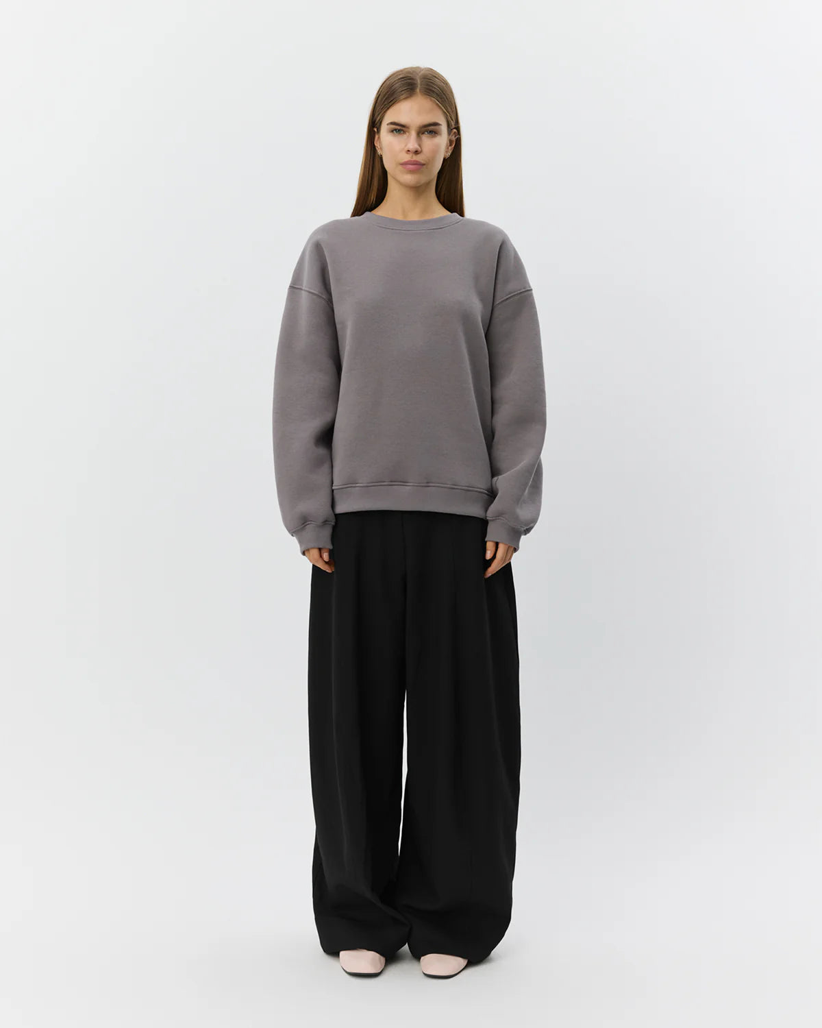 A laid-back essential with effortless attitude. this relaxed-fit sweatshirt features a classic round neckline and long sleeves for everyday comfort. Ribbed cuffs and hem create subtle structure. while the statement back print reading Parisienne à Copenhague adds a cool. continental touch. Perfect with wide-leg trousers or denim. it’s an easy choice for off-duty days with a refined. modern edge.