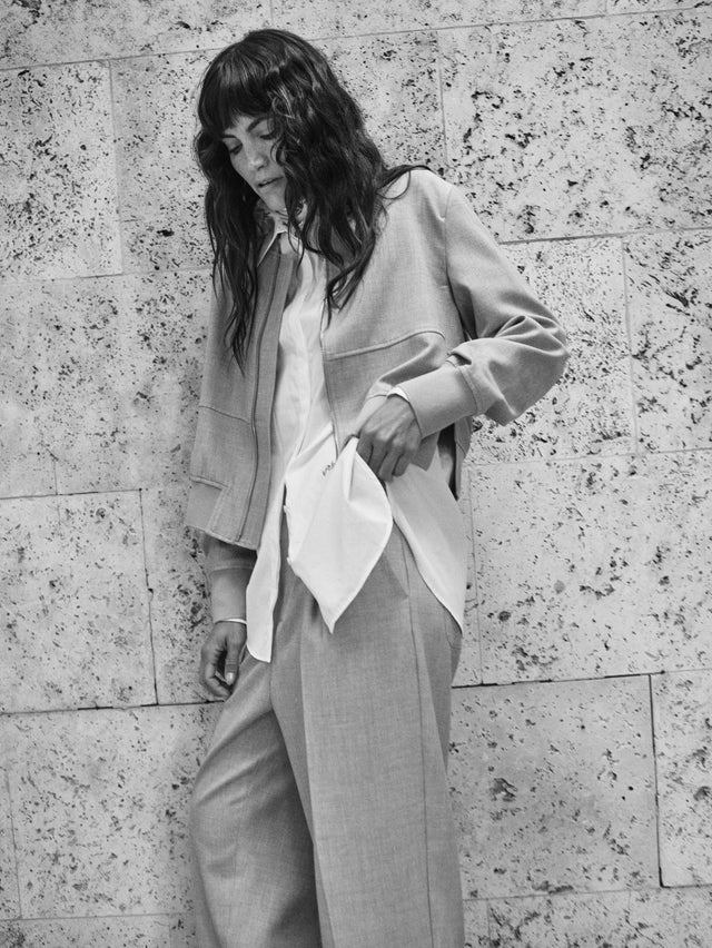 Tailored in a soft recycled polyester blend. these pants feature a flattering mid to high waist and a relaxed boyfriend fit with cropped length. The melange texture adds a refined touch. making them perfect for both smart and casual looks. Pair with the matching Flair Jacket for an effortlessly coordinated outfit.
