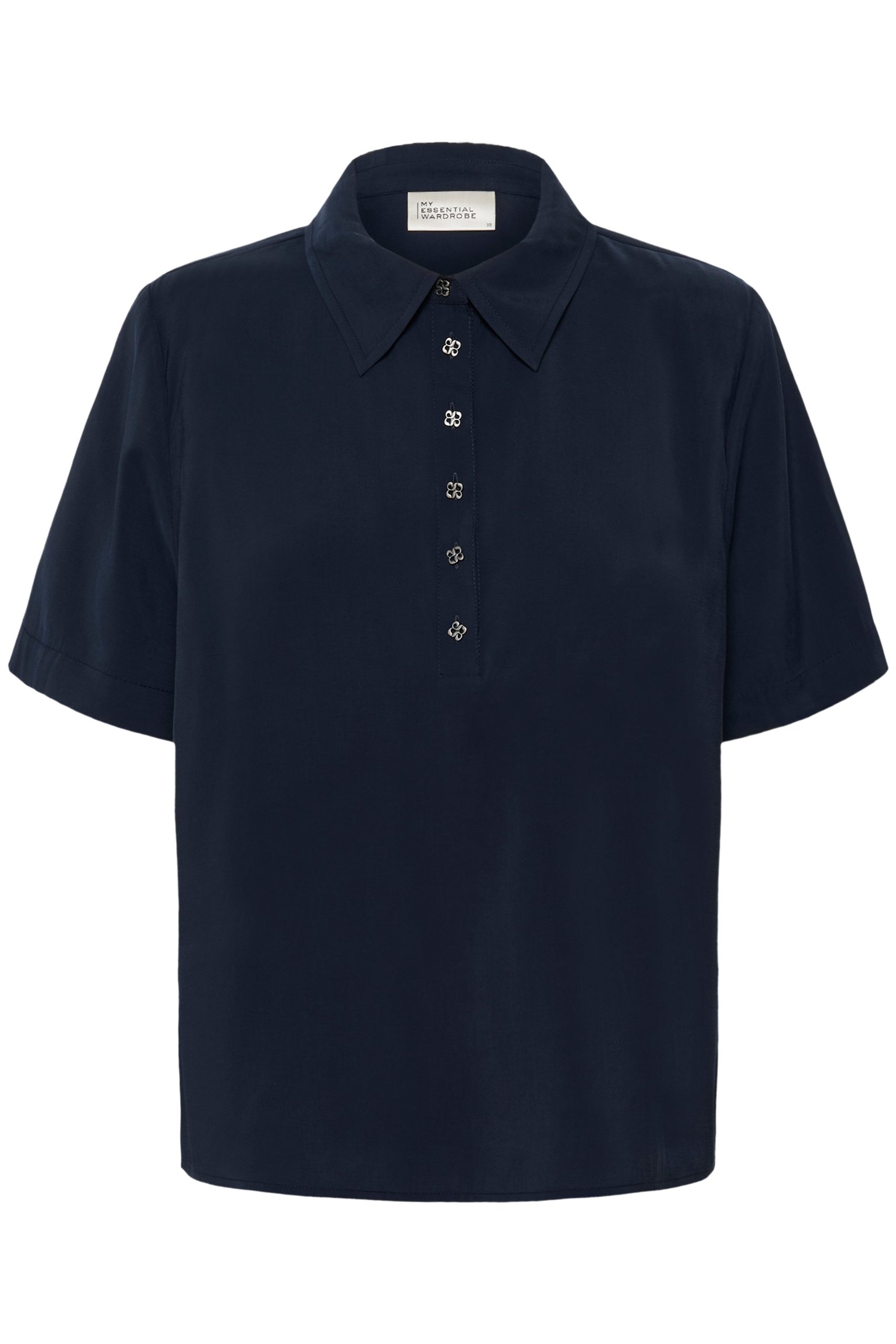 This women’s short-sleeve blouse features a relaxed fit. classic polo collar. and elegant button placket. Ideal for a smart-casual look. its lightweight fabric ensures all-day comfort and versatile styling options.