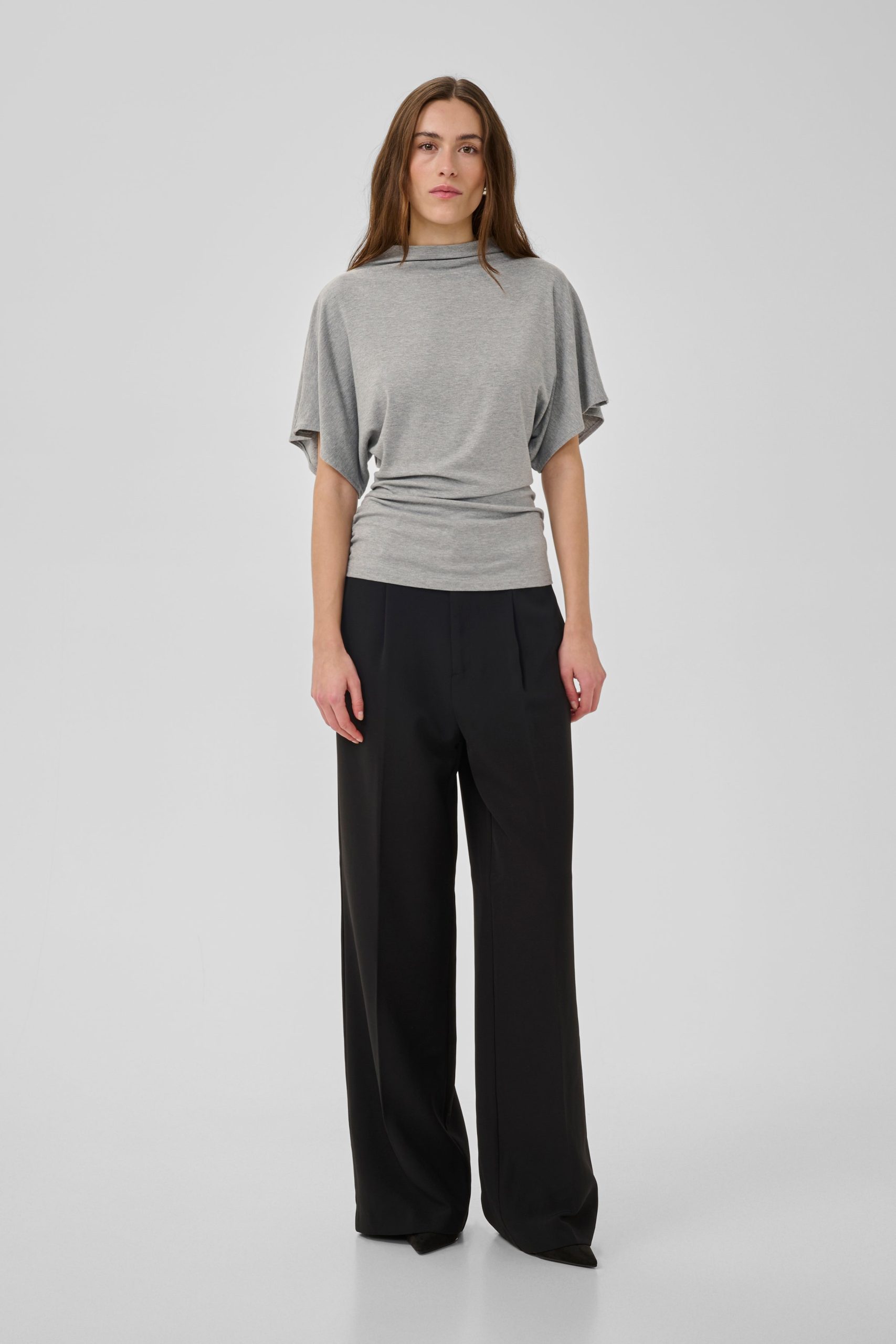 This relaxed top features a soft draped silhouette with wide. flowing sleeves and a modern high neckline. Gentle ruching at the waist enhances shape and creates a flattering. feminine fit without feeling restrictive. Easy to dress up or down. it pairs seamlessly with tailored trousers for a refined look or denim for understated everyday sophistication.