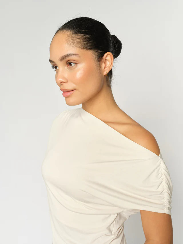 This elegant sleeveless tee is crafted from a soft. stretchy fabric that feels smooth against the skin. It features a flattering boat neckline and a fitted silhouette that highlights the body beautifully. A versatile piece that can be dressed up or down – perfect for layering or wearing on its own.