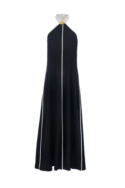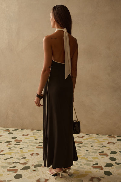 The Savannah Dress is a play on a classic slip dress with more body. Featuring contrast panel lines and beautiful halter neck. this sophisticated piece with its floaty silhouette. is perfect for those that like a relaxed fit dress that they can feel comfortable yet stylish in. Pair yours with our Sirolo Bag.