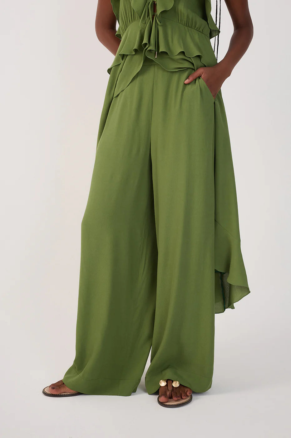 Add movement and lightness to your outfits. These Green Coco Wide-Leg Crepe Pants feature a high waist. elastic at the back waistband for comfort and better fit. pockets. and a wide-leg shape that delivers the loose drape we love.